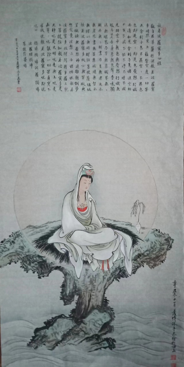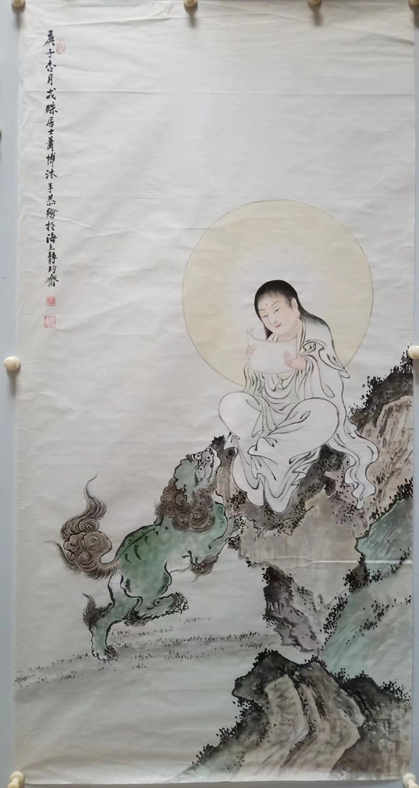 歷史上女畫家不多,現世的女畫家也不多,像蕭博這樣只是因為畫才實實在在活著的女畫家更是不多。十一月,她的畫要在靜安古寺里展出了。其中甚至有三十七米長的《五百羅漢圖》長卷。畫了這么多年的畫,總盼望人家能看到,也盼望人家能說個好字。塵世的功名,人人都會有些想念。我不是蕭博的老師,可我愿意為蕭博寫這些文字。少年,青春、不該白白流走,一顆虔誠的心,應該受到尊重。池塘春草柳鳴禽,蒲席天花石點頭,女畫家精神所至,丹青對她,已金石漸開。梵音妙相,說到底就是祈求幸福,在此,也借蕭博的畫意,謹祝久臥在床的我的老師許寅康寧,如意。人間的好心愿,應該和畫在一起。