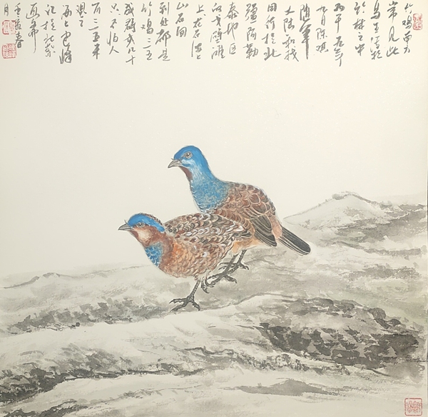 夏建峰從1984年進大學學習花鳥畫至今,在花鳥畫創作領域已經有38個春秋了。幾十年來,他善于學習、勤于筆耕,師從海上多位名家,從傳統繪畫中汲取藝術精華。他以自己的審美視角,用心營造的花鳥畫世界,讓人感受到創作花鳥畫藝術上的獨特表現手法,讓觀眾感受到畫作的靈動與厚重、灑脫與抽象,給人以一種爛漫的藝術享受。更重要的是,他堅持不懈地走向名山大川,在風餐露宿、往復奔波中觀察自然、研究自然,師法自然,由與內心體悟交融升華,創作出一幅幅精彩作品。