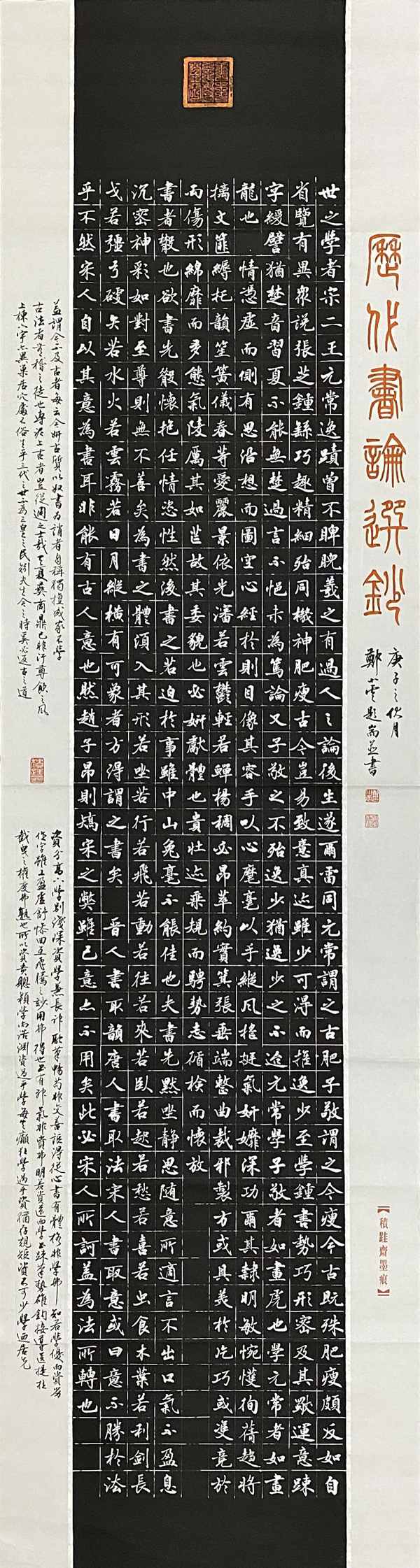 事實(shí)證明,鄭小云成功了。何說(shuō)其藝高膽大?以筆者對(duì)其30多年從藝之道觀察,是他自有的文化自信心使然。書(shū)法學(xué)藝一路走來(lái),嘗盡個(gè)中甘苦,最終依仗“路子正、筆力遒勁、章法完美”的創(chuàng)作法寶,攀登上了國(guó)展平臺(tái),也順理成章地成為了中國(guó)書(shū)法家協(xié)會(huì)會(huì)員。