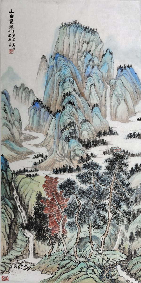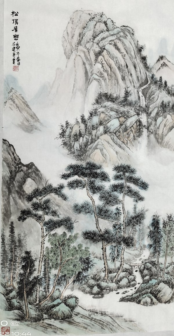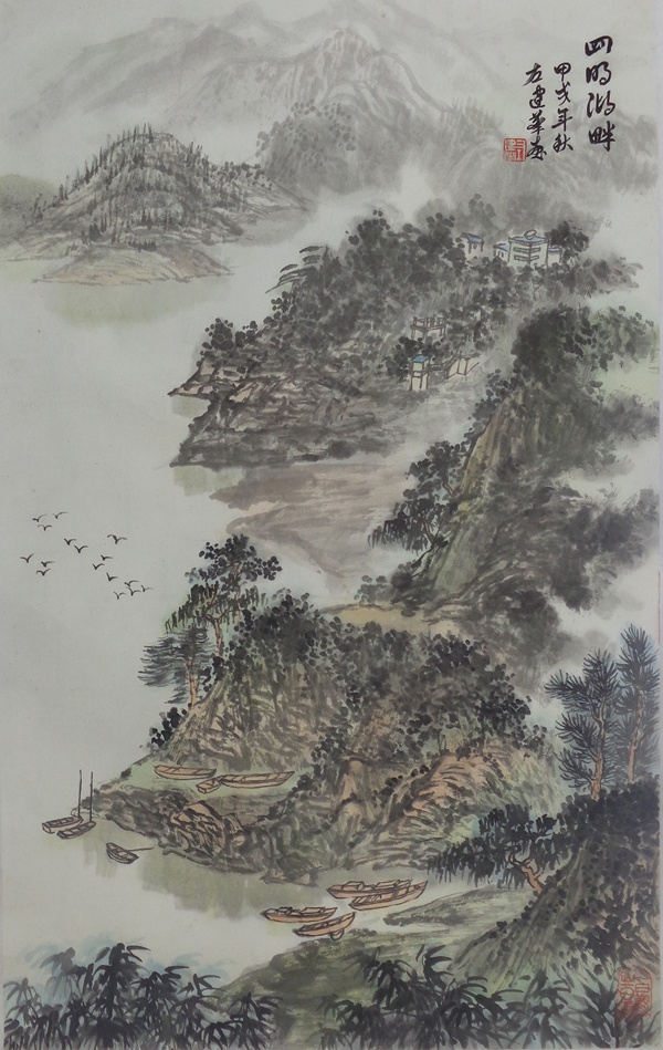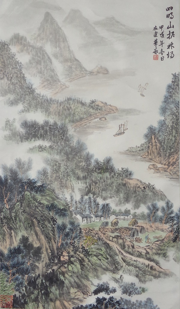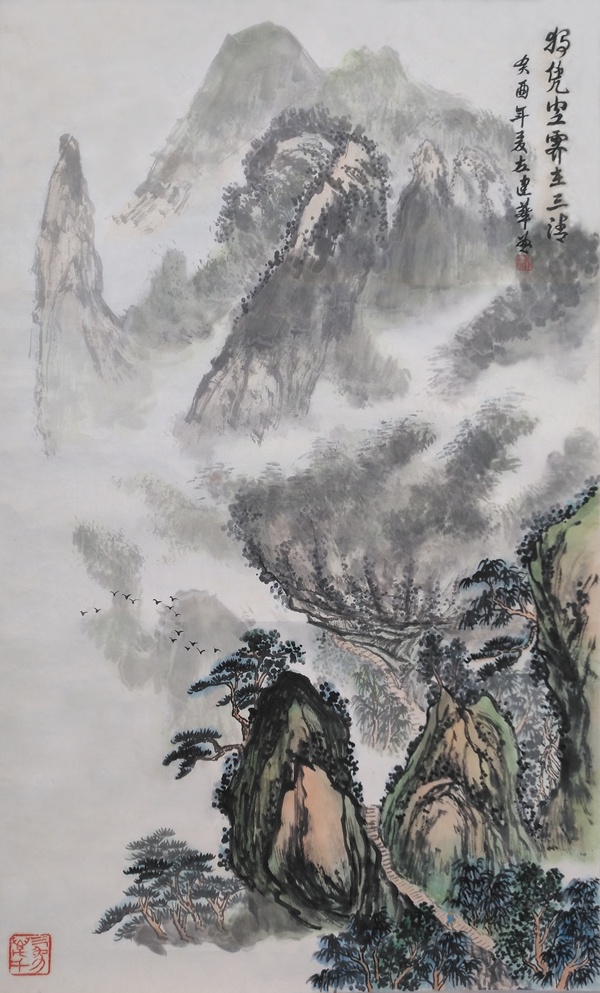 油畫師承顏文樑,國畫師承陸一飛。從研究明代畫家唐寅入手,遍臨唐、五代、宋、元、明、清等歷代書畫名家作品,植下了堅實的傳統根基;并以大自然為師,他還應邀前往全國講學、寫生,走遍祖國大江南北,探尋造化的奧秘,寫生稿盈夾,藝技日進,終有所成。藝術風格入傳統而不泥古,心師造化,獨辟蹊徑。其作品水墨淋漓,雍容大器,古樸雋永,氣勢磅礴,意蘊悠長,用筆蒼勁有力,色彩淡雅明麗,雅俗共賞。