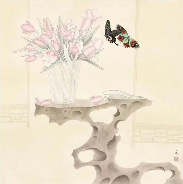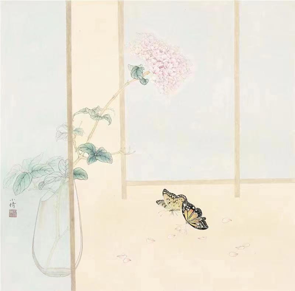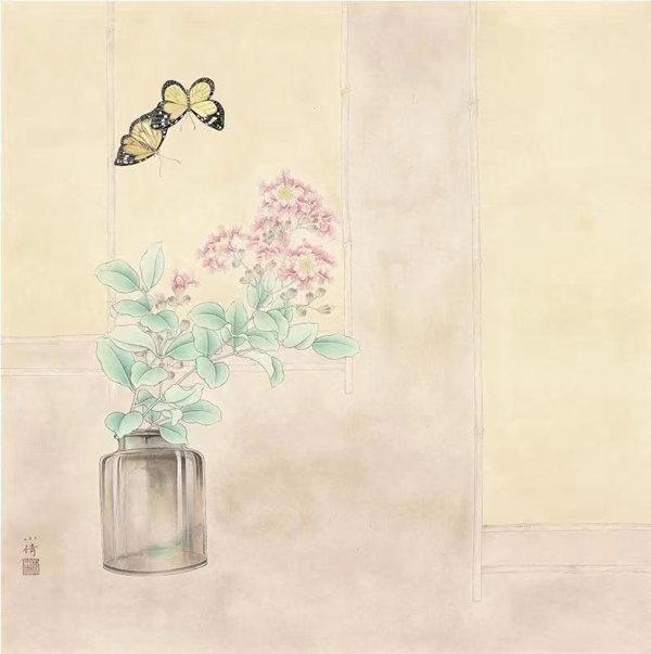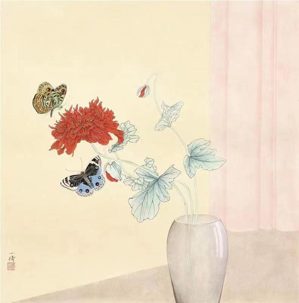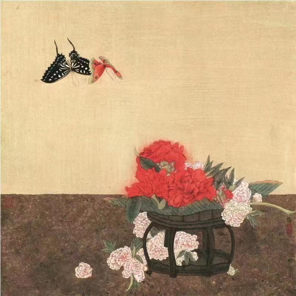2021年 送你一朵小紅花系列 48×48cm 紙本設色