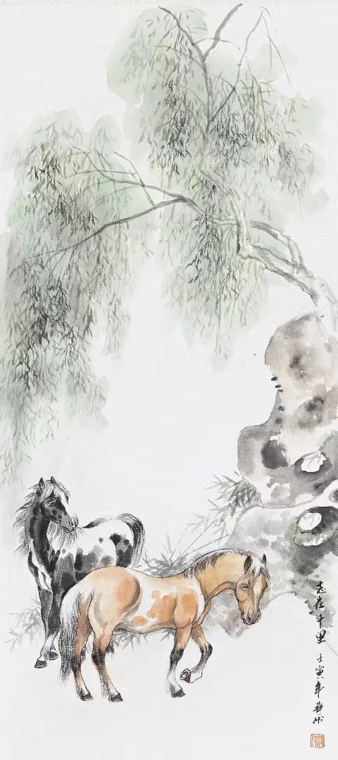 我們中國(guó)畫(huà)講究造型基礎(chǔ)。基在南齊時(shí),古人就提出了繪畫(huà)六法,“應(yīng)物象形”指的就是造型基礎(chǔ),它要求繪畫(huà)作品首先要有生活基礎(chǔ),不能憑空杜撰。如果沒(méi)有造型基礎(chǔ),三筆兩筆按照一個(gè)套路畫(huà)出來(lái),那就不是造型基礎(chǔ)。“應(yīng)物象形”是需要智慧的,創(chuàng)作不是簡(jiǎn)單地客觀記錄,而是精簡(jiǎn)和提煉,這就需要畫(huà)家對(duì)自然客觀對(duì)象進(jìn)行由表及里的認(rèn)知和品味。人的思維都是客觀形象投射到腦海中的反映,沒(méi)有對(duì)自然形態(tài)的長(zhǎng)期觀察,筆下的形象就難有神韻,缺乏生動(dòng)。至于如何在創(chuàng)作中融入對(duì)動(dòng)物的感情,進(jìn)行人性化處理,引起觀眾共鳴,這里面就可以看出畫(huà)家的藝術(shù)手法的高低和人文情懷的深淺。“氣韻生動(dòng)”指的是畫(huà)面效果,其背后映照著作者的人格修養(yǎng)、精神面貌,意識(shí)形態(tài)等,所謂“面如其人”,畫(huà)品不俗,人亦不俗。畫(huà)品不高,人無(wú)法高。