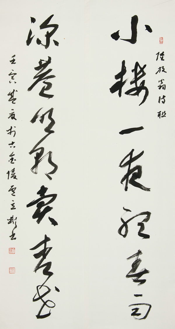陸游詩聯 小樓一夜聽春雨,深巷明朝賣杏花。 138×73.5cm