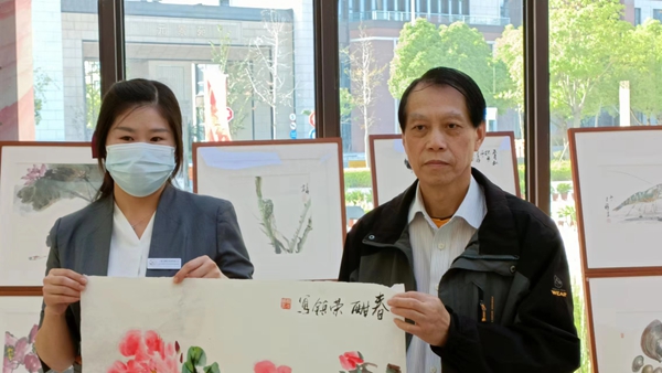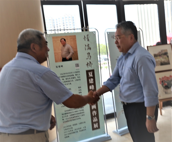 最后有馬橋鎮(zhèn)的老書記,現(xiàn)任閔行區(qū)書法家協(xié)會(huì)主席何國文,宣布“情滿馬橋”夏建峰中國畫作品展開幕!