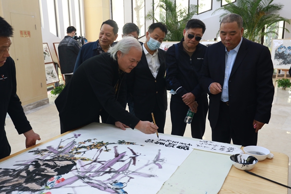 在開幕式上,來參加開幕式的書法家和畫家揮毫潑墨