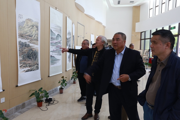 今天來參加開幕式的嘉賓有上海市書法家協(xié)會(huì)副主席晁玉奎、上海市美術(shù)家協(xié)會(huì)副主席陳琪,閔行區(qū)原政協(xié)主席吳申耀,虹口區(qū)文聯(lián)主席陸健,閔行區(qū)書法家協(xié)會(huì)主席何國文,虹口區(qū)美術(shù)家協(xié)會(huì)主席余仁杰,奉賢區(qū)美術(shù)家協(xié)會(huì)主席李鐘,副主席李言,閔行區(qū)美術(shù)家協(xié)會(huì)秘書長陳曉云,以及畫家卞真、孫忠民、嚴(yán)榮鎮(zhèn)、吳春魁、還有朱順林夫婦,企業(yè)家沈世良、顧利民、王海民、顧華等,還有夏建峰在馬橋夏家的代表,中學(xué)同學(xué)周忠銘、楊士勇等近五十人參加了開幕式,在開幕式前幾天,閔行區(qū)的區(qū)委、政府、人大和政協(xié)的領(lǐng)導(dǎo),以及馬橋鎮(zhèn)的各級(jí)領(lǐng)導(dǎo),都到展覽現(xiàn)場,觀看了這次畫展。