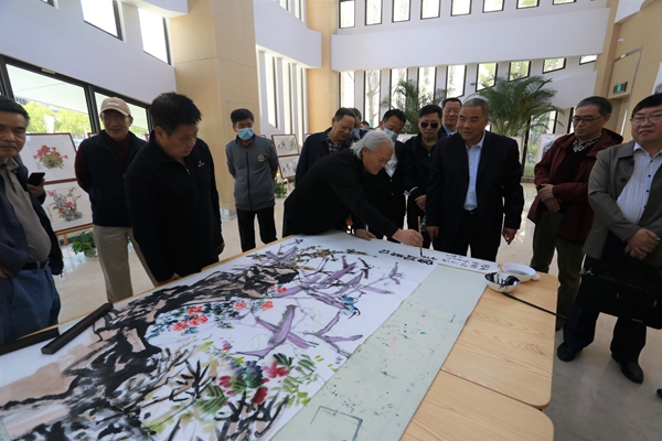 在開幕儀式以后,前來參加開幕式的畫家和書法家揮毫,為馬橋文化中心留下了墨寶。