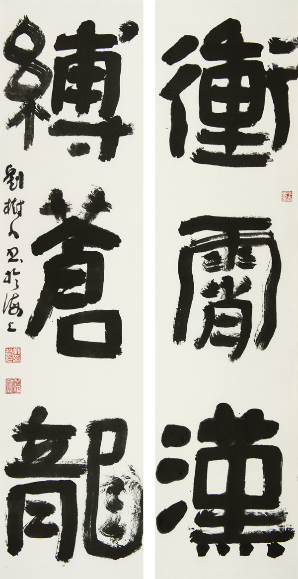 集毛澤東詞句聯 沖霄漢 縛蒼龍 140×34.5×2cm