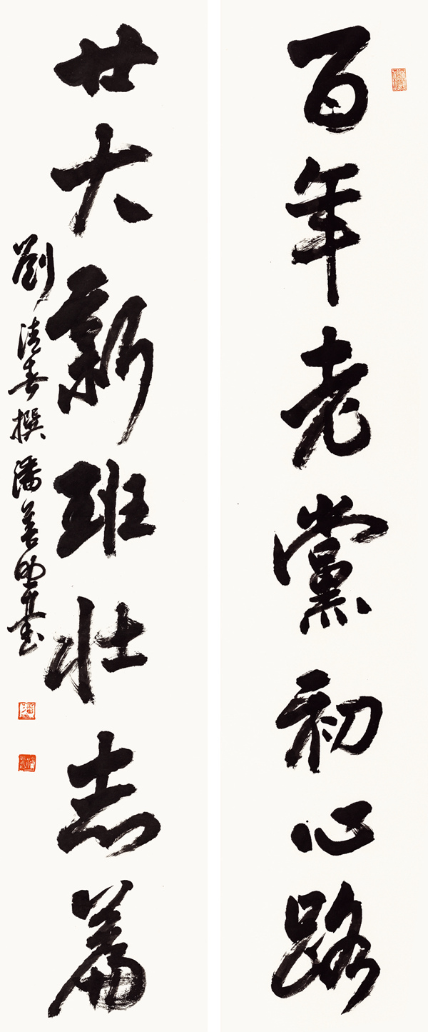 《劉清春〈百年/廿大〉對(duì)聯(lián)》178×37cm×2