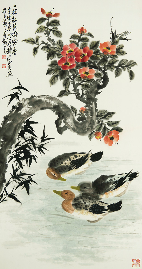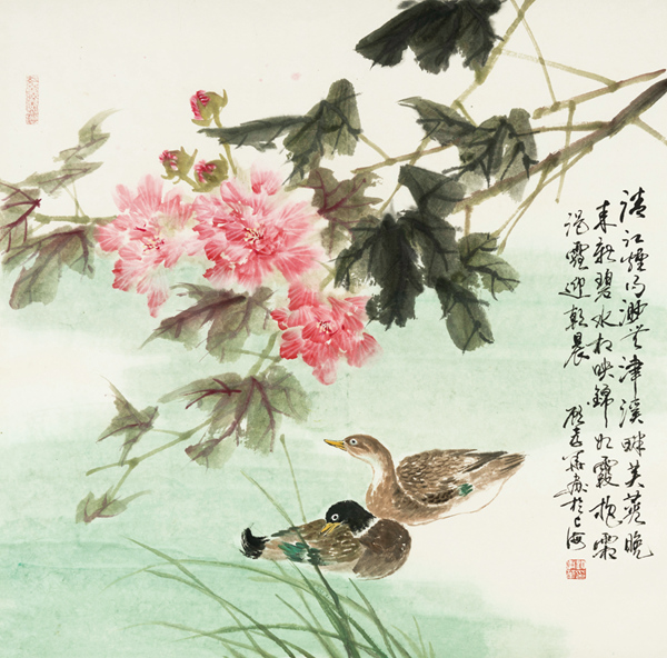 《芙蓉水鴨》68×69cm
