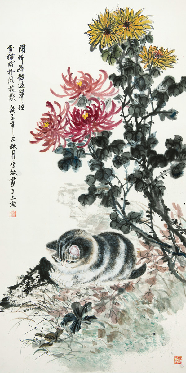 《戲貓圖》136×68cm
