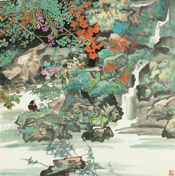 《鳥(niǎo)棲林間》68×68cm