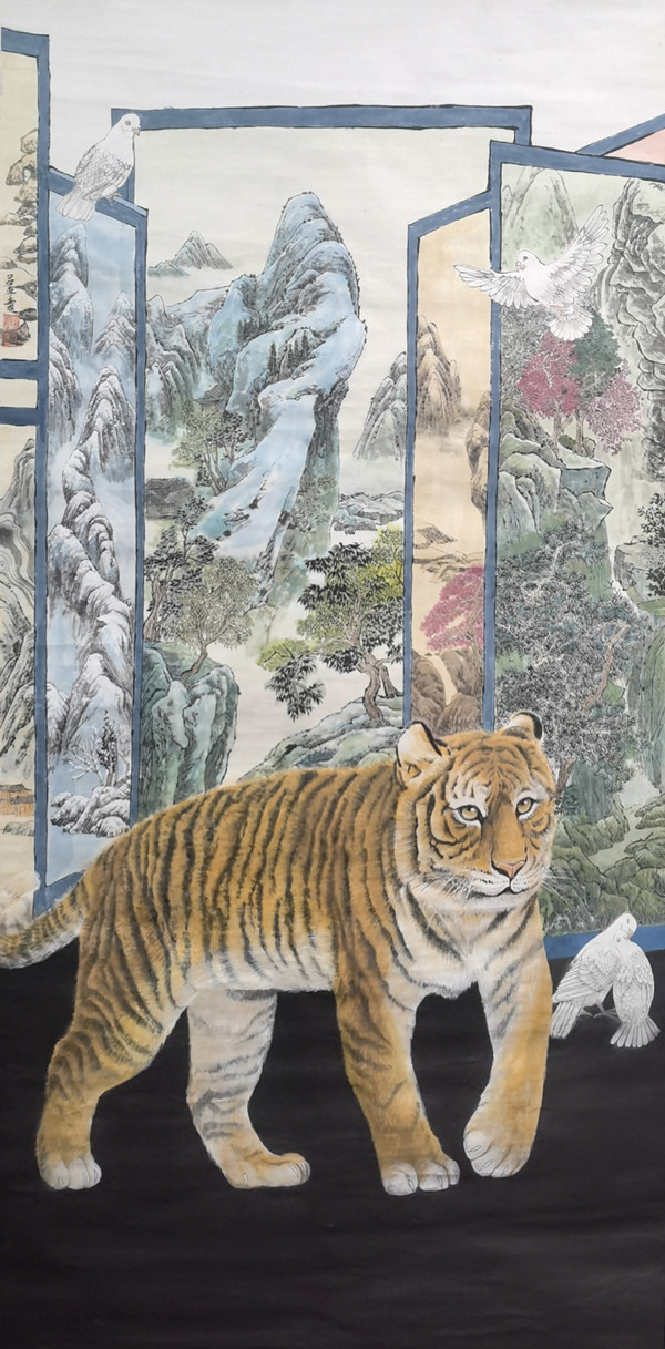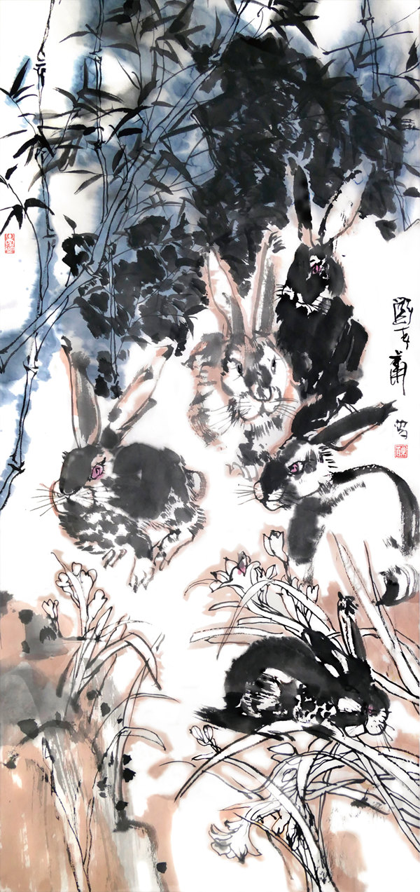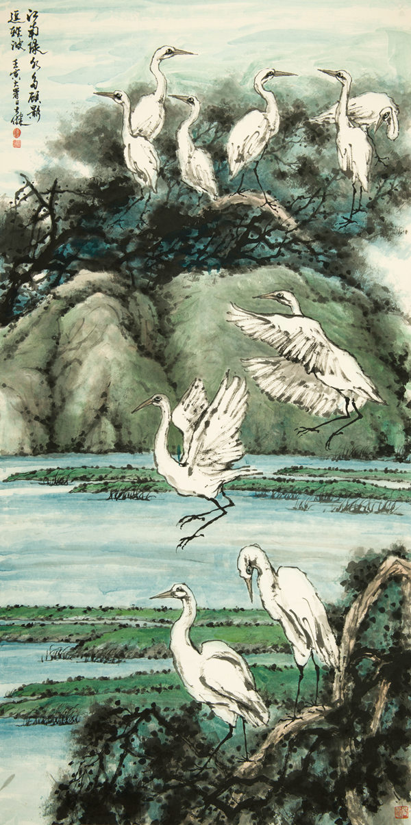 《萬(wàn)類霜天競(jìng)自由》136.5×68cm