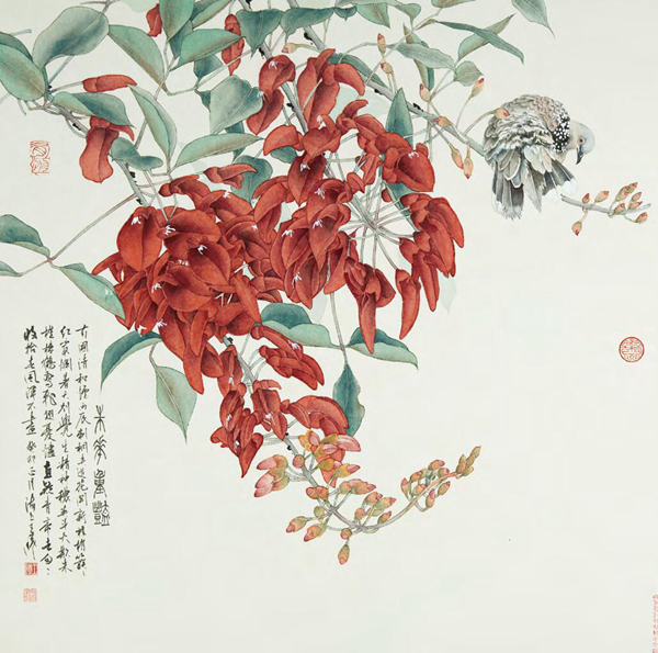 《紅芳棲禽》 66.5×42.5cm