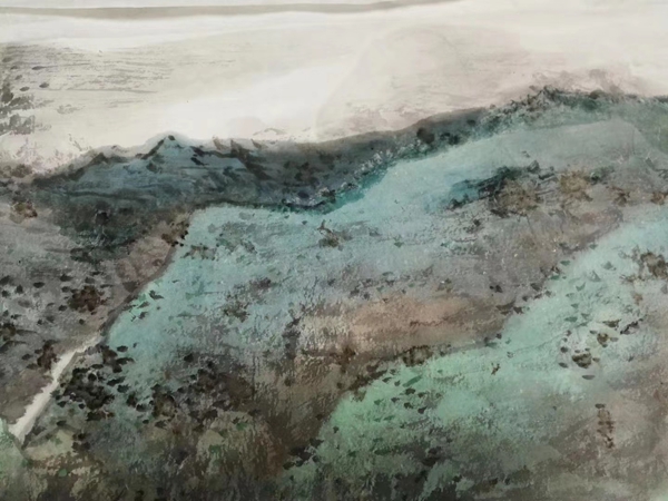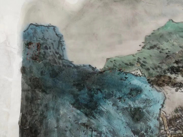 我認識了胡學東老師已經有十多年了,他平時話不多,但是對山水畫研究很深,他曾經受業于中國美術學院山水畫研修班,傳統基礎很好;他夫人是開裱畫店的,修復殘缺畫是他夫人的專長。前幾天我聽朋友說,胡學東夫婦最近成功的修復了一幅尺寸比較大的名家國畫,我帶著好奇,來到胡學東老師的畫室一看究竟,原來是老友著名山水畫家樂震文老師的作品,聽說這幅畫原作被霉菌腐蝕得非常嚴重,經過精心清洗和修復以后,得到了樂老師的肯定,