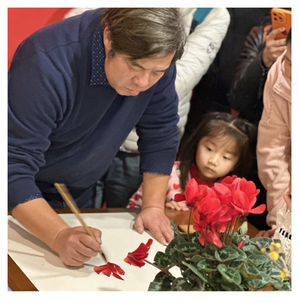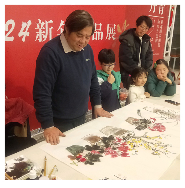 在浦東圖書館“水墨丹青”夏建峰中國畫2024新年作品展上,夏建峰老師多次舉辦“中國畫寫生與創作”公益講座