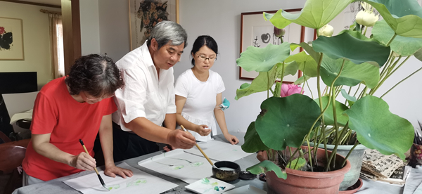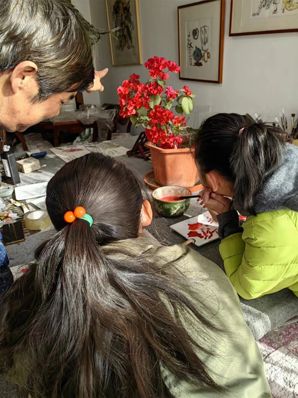 這些學(xué)生,都是在上海疫情爆發(fā)以后,先后到夏建峰老師的工作室學(xué)習(xí)國畫的,大家學(xué)習(xí)非常刻苦,特別是陳毅、陸菲菲和武莎,她們白天上班,晚上回家還有家庭日常事務(wù)的打擾,能夠堅持的現(xiàn)在不容易。兩位小朋友郭坤依和唐熙晨,都進入中學(xué)了,而且都是班級的班干部,對于她們來說,現(xiàn)在的學(xué)習(xí)時間越來越緊張,且每個星期還堅持不懈的來夏老師工作室學(xué)習(xí)國畫。
