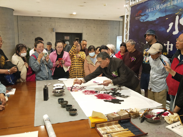 在開幕式前,已經來了許多繪畫愛好者,畫師們現場揮毫潑墨,把活動推向高潮。