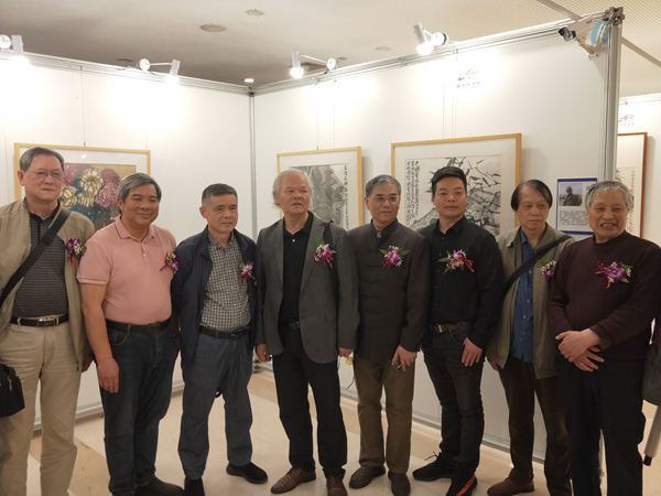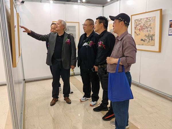 畫師們在展廳交流合影