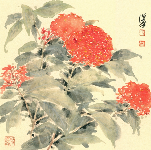 難能可貴的是,他飽覽百花神采,累積不計其數的寫生作品,但這次向黨百年華誕獻禮的作品,全部選自國內的花卉品種。筆者最近先睹了他準備展出的百幅作品,果真花團錦簇,美不勝收。特別是看到他完成第100幅作品“龍船花”時神采飛揚的快樂,真的被感動了!
