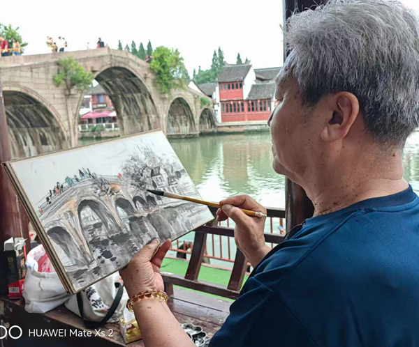 近年來有機會參加了數次旅游采風活動,每每都努力去體驗人和自然,藝術的美感,立求客觀和主觀的再認知,再統一。戶外寫生注重取法自然,細觀每幅作品,層巒疊嶂,造化筆底,大有其:戰立高峰去看風,山水無聲入紙來。以藝術觀念,運用豐富的筆墨,精準的理解,解構映入眼簾的大自然各類存在,欲與大癡同云游,讓人感受草木皆有情,暮秋山舍滿坡暉。詩是藝術靈魂的逐放處,繪畫的淵源,永保山林之中的野趣,悠然之中天趣自生。歷次戶外寫生情況各不相同,因為采用了各種方法以嘗試如:鋼筆速寫,鋼筆淡彩,水彩,水墨。