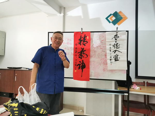 3.會員王繼東:大師揮毫力透紙背,入木三分,鐵畫銀鉤,筆飽墨酣。開眼界了!感謝王大師冒著酷暑為我們大家上課生動形象,通俗易懂,深入淺出,受益終生。