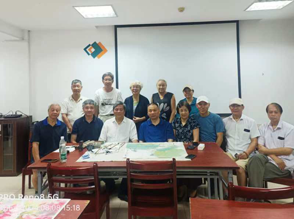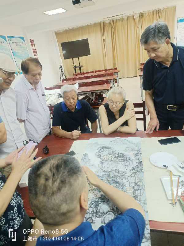 八月的天氣,上海市區的街道上,像火爐烤的一樣,非常的炎熱,知青書畫聯誼會的會員們,冒著酷暑來到位于天山社區文化活動中心教學樓創作基地,來參加活動。會長夏建峰早早的來到這里,還有副會長兼秘書長英自海,會員曹啟文、稻香、陳國珍、李建華、蔡建平、馬詠鳴、顧鞍鋼、胡敬興、薛梅娣,還有應邀參加活動的孫忠民、嚴榮鎮。
