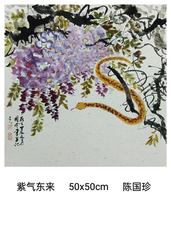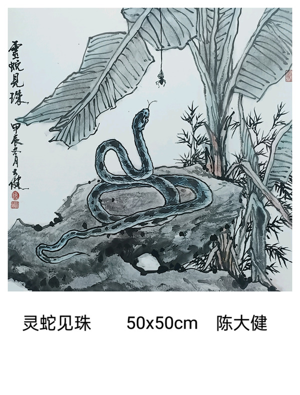 我們上海這片文化厚土,有著濃郁的藝術氣息。我們書畫聯誼會的藝術家秉持著對藝術的赤誠初心,展覽了一批以生肖蛇為題材的書畫小品,盡管尺幅有限,卻容納著書畫家們對藝術的想象與洞察。這些作品題材豐富多樣,圍繞生肖蛇題材,結合山水、花鳥、人物已經裝飾畫,這些作品則表現了自然靈動與神韻。書畫家們以精妙的筆墨、和諧的色彩,勾勒出內心深處的美好和對藝術的不懈探索。