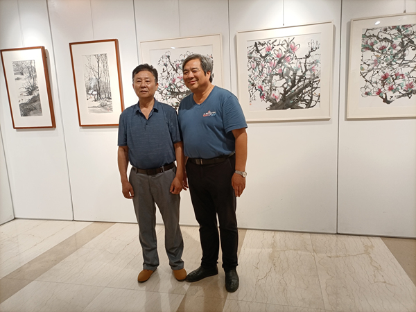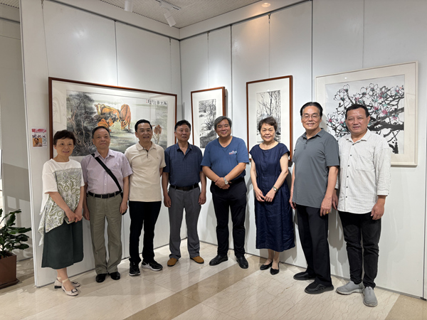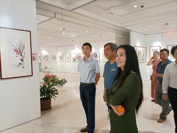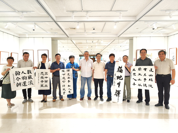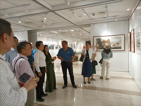 移步展覽大廳參觀夏建峰個人畫展,藝術家現場講解作品并開展筆會互動。