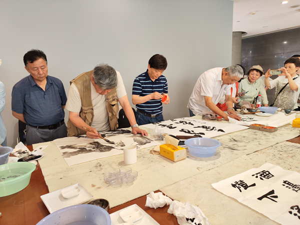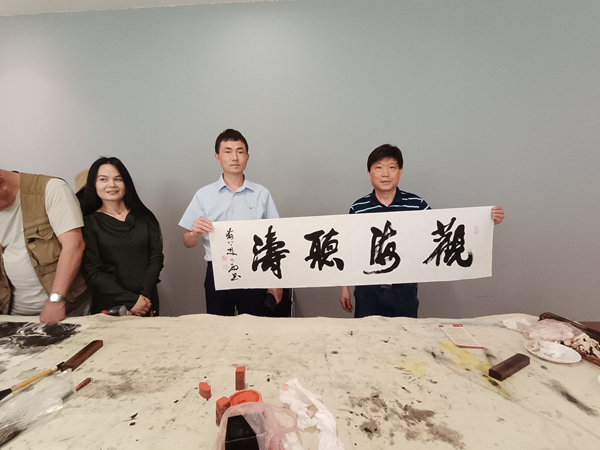 參觀過程中,畫家們興致高漲,紛紛揮毫潑墨。他們或執筆作畫,勾勒山水意境;或運墨書寫,揮灑胸中豪情。一幅幅佳作在筆下誕生,現場墨香四溢,充滿藝術氣息。畫家們還互相交流創作心得,并互贈作品,以墨寶傳遞情誼,共同留念這一美好時刻。