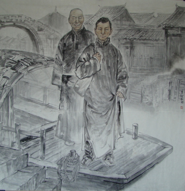 自徐悲鴻、蔣兆和二人始,中國水墨人物畫加速了探索的步伐。以中國美術學院為濫觴中心的浙派人物畫,賡續至今出現了李震堅、周昌谷、方增先、吳山明、劉國輝等等一批又一批優秀的藝術家。這些畫家與當時的北方畫家相比,在用墨用色上透明多變,在用筆上飄逸清秀,并更加注重書法韻味。他們在刻畫當代人物的形象方面做出了許多有益的探索,較好地緩解了同時追求寫實造型與筆墨時產生的生硬感。實踐說明將光影寫實語言與傳統寫意人物畫的勾勒相結合,是能夠表現新時代、新都市、新人物的。