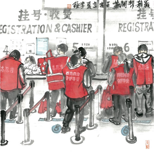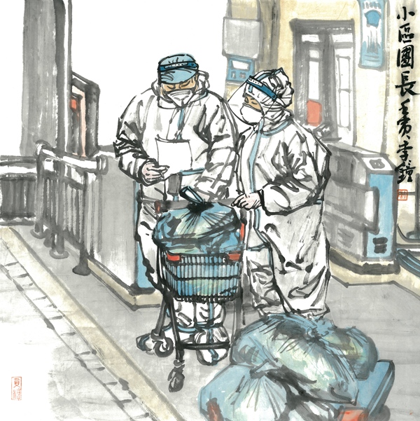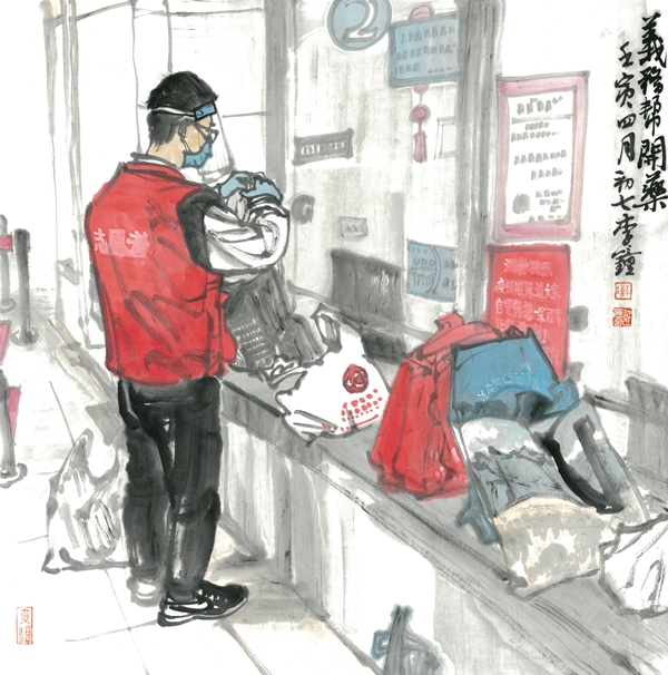 《小區志愿者之一》69×69cm 中國畫 李鐘 2022
