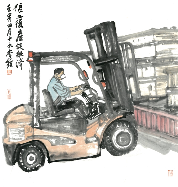 《復工復產促經濟》69×69cm 中國畫 李鐘 2022