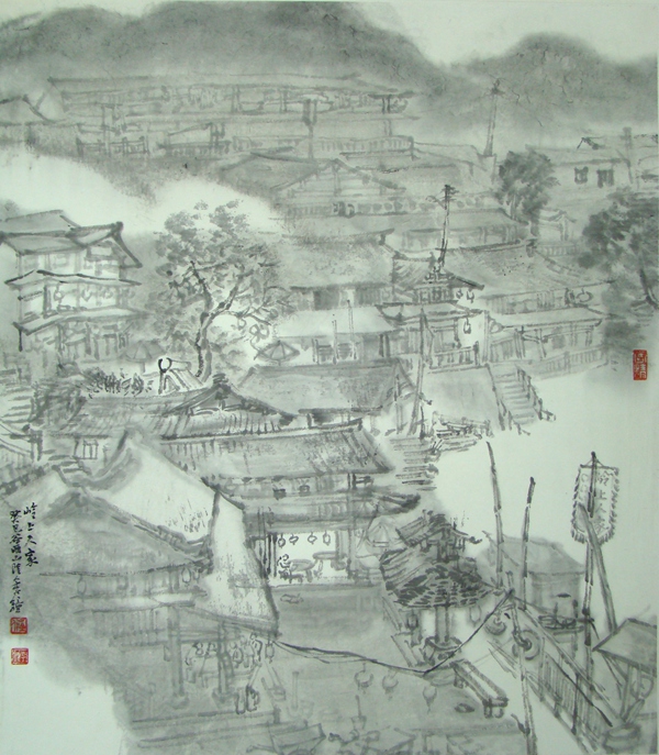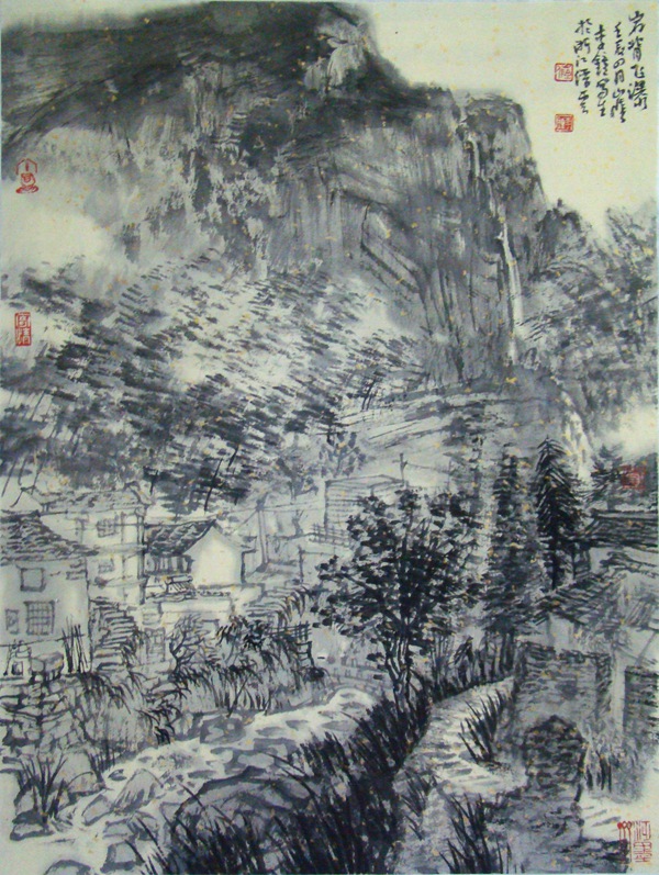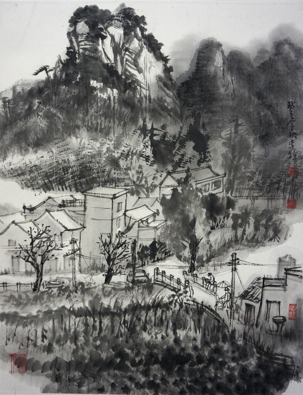 嶺上人家 52×46cm 水墨寫生 2013 李鐘