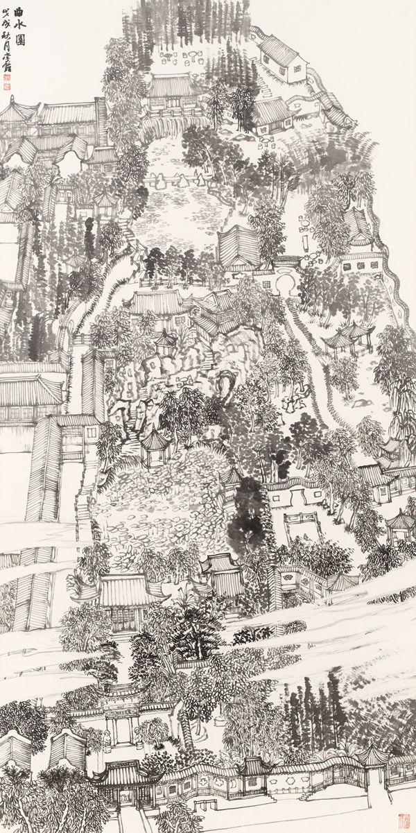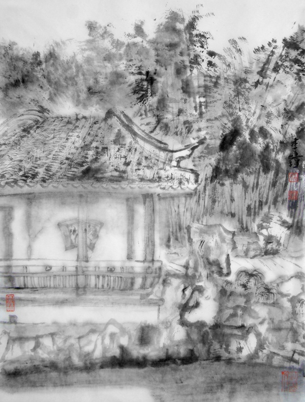 興園度鶴亭 46×34cm 水墨寫生 2011 李鐘