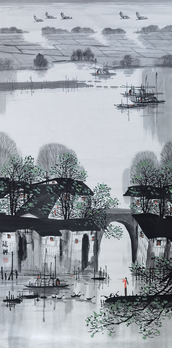 徐鴻興的版畫優雅獨特,引人入勝,同時他又把版畫元素融入國畫創作之中,令其國畫作品形式新穎,氣勢奪人,水墨淋漓,風格獨特。