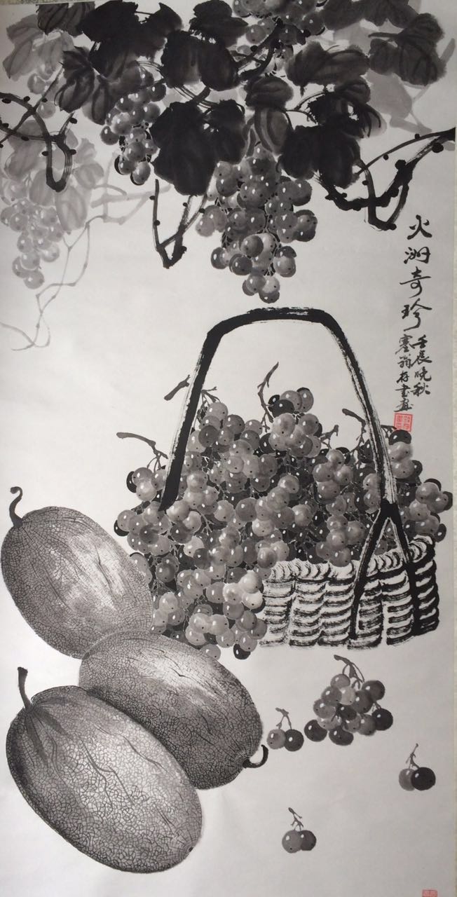 錢存書先生上世紀五十年代支援新疆社會主義建設,六十年代參加中國人民解放軍,七十年代轉入軍工企業一直與筆墨為伍,九十年代末期退休定居上海市。他自幼酷愛書畫,曾拜新疆書畫家陳天青老先生為師,歷經磨練,潛心書畫,以花鳥畫、葡萄、哈密瓜見長,其作品曾在新疆及全國展覽并獲獎。