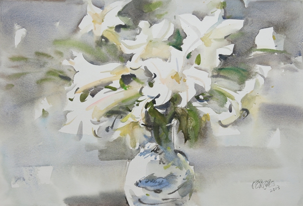 水彩畫創作過程的不可預知及不可復制性,為畫家帶來各種機遇和挑戰,隨時面臨各種不同技巧的考驗,瞬間須掌握物體的形象及因水色的流動、滲化、停滯所產生的偶然魅力,透徹的了解水,巧妙地運用水就一定能在水、色的世界里游刃有余。