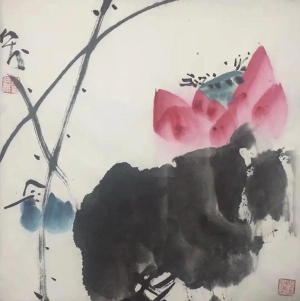 細(xì)數(shù)近代畫(huà)荷名家,張大千追求荷韻,清新優(yōu)美、揮灑如意;齊白石追求荷趣,天真爛漫、不似而似;潘天壽追求荷骨,霸悍頑強(qiáng)、崢嶸不屈;于非闇追求荷色,形象逼肖、妍麗精巧。余仁杰畫(huà)荷似乎有意避開(kāi)諸上名家,而獨(dú)取元明之空靈悠遠(yuǎn),徐渭、朱耷的影響尤為深刻。用盧金德的話(huà)來(lái)說(shuō),就是“余仁杰的中國(guó)畫(huà)在大寫(xiě)的酣暢中很使畫(huà)面有一種蔚霞的張力”。