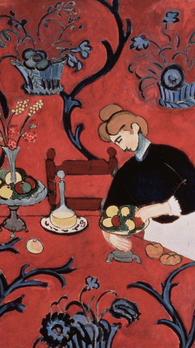 馬蒂斯筆下的顏色鮮艷而飽滿,色彩運用極致和諧,使人感到溫暖、舒適,得到視覺上的滿足