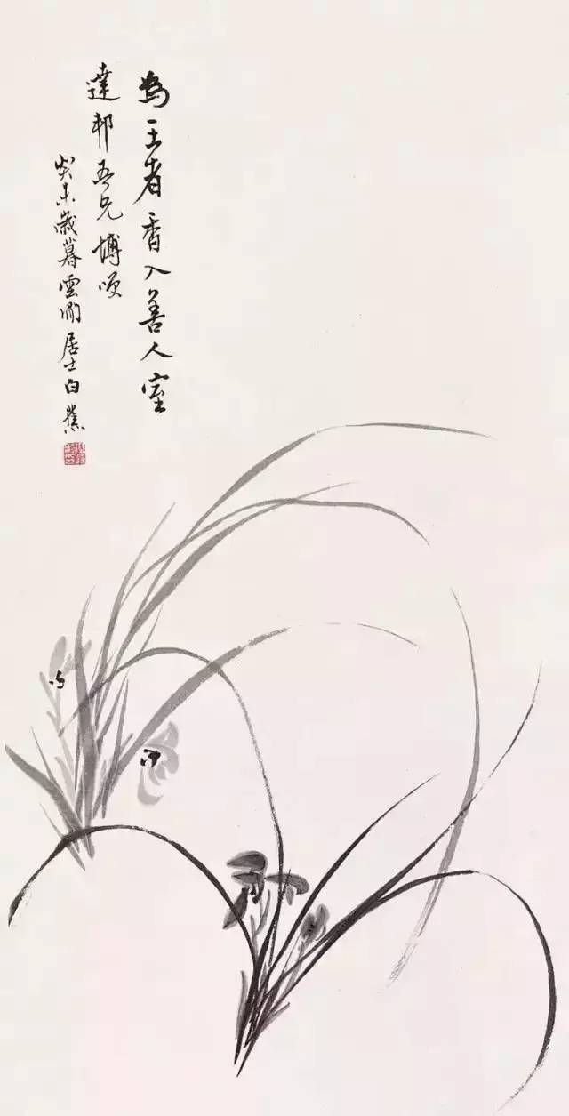 潘天壽畫蘭,得益于其了得的的書法功底,幾筆行云流水過后,蘭花就挺拔于紙上,自然而隨意。
