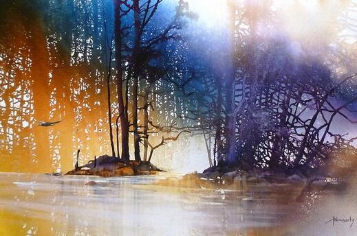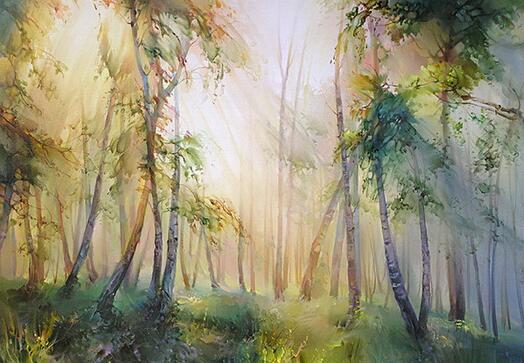 波蘭藝術家瑪爾格札塔?什切欽斯卡是水彩畫畫家。她的畫風輕柔,她創(chuàng)作就像在傾訴自身對自然之美的禮贊。她體悟了森林、微風、綠草、花叢、光線和色彩的融合,并用畫筆將其描繪出來。