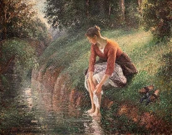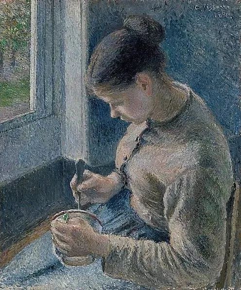 畢莎羅正是利用這種深淺層次和透明力度來表現光線、體積和空間,以上下重疊,彼此相互融合的筆觸來描繪人像。