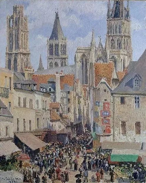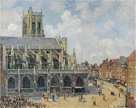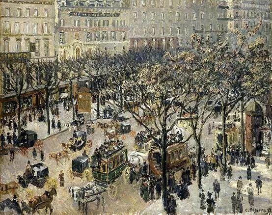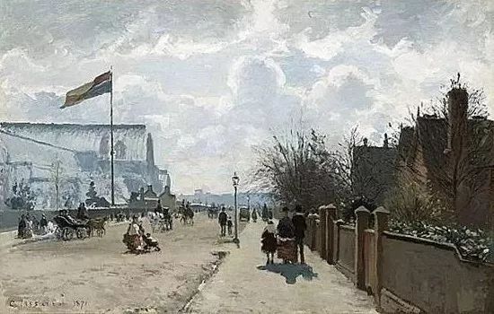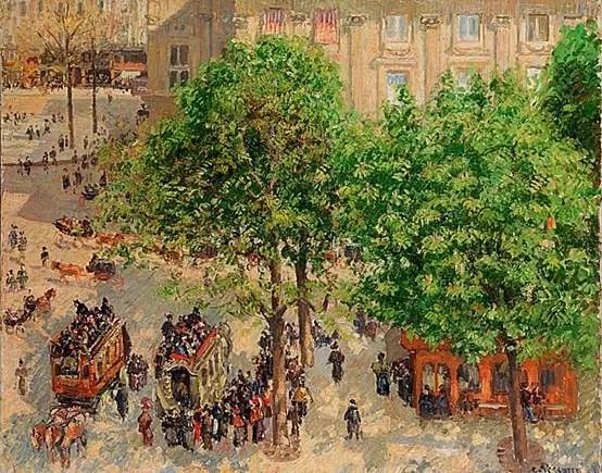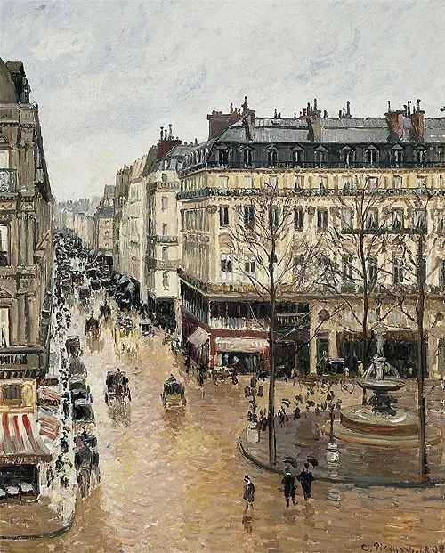 畢莎羅晚年排除了外界畫法對他的干擾,表現出一個充滿自信的印象派的元老畫家的精湛技巧和恢宏氣魄,后期主要描繪繁華的城市和街道建筑,多取俯視角度,他更多是從樓上居室俯視描繪街景。