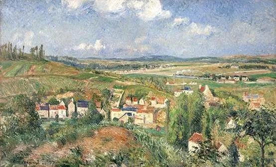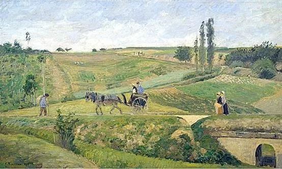 畫中看到的既有柯洛影子,但更多的是畢莎羅自己的清新的空氣、明媚的陽光、柔和深遠的云天,給人的時空和色彩的感覺妙極了,這種印象的真實感能喚起每個人如同身臨其境的回憶。