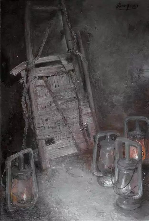 夏葆元 念長征——黎明前的馬燈 75×75cm 布面綜合材料 2016年