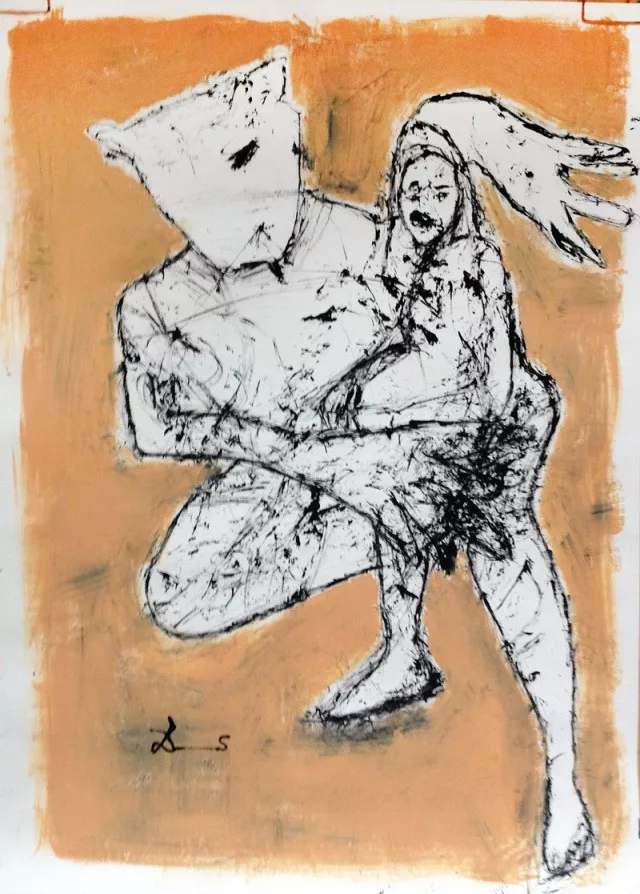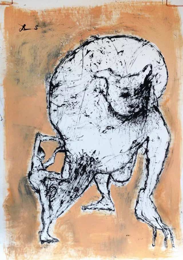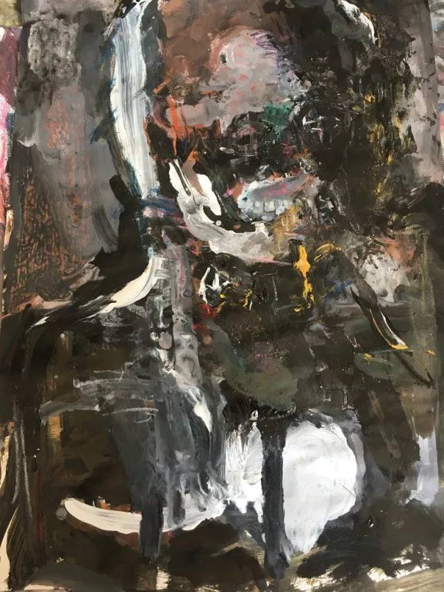 勒緹霞·杜香以前曾在巴黎大學攻讀過藝術史和攝影,然而多年以后,她卻發覺,硬材料雕塑和繪畫才是她的最愛。她喜愛用石頭打磨一個雕塑,或是用鐵片編織造型奇怪的形,這些形介于物體和生物之間,但是雕塑創作受條件限制很大,直到有一天,她用樹枝沾著墨汁開始在紙上作畫,立刻,一個新的世界就被打開了。她曾經和一個亞洲藝術家在一起生活過,東方文化令她著迷,東方人對紙張和墨的敏感也傳染了她,她用隨意采來的樹枝,蘸著墨汁在紙上塑造震顫的線條和形,然后又用類似古巖畫的顏色來限制這些形,于是畫面上便形成了個人性的圖像,它們充滿了現代的原始感,也有她個人的生命密碼。