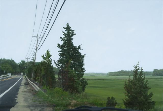 “這些油畫反映了我對公路如何掌控我們對風景的體驗與感受的興趣。從公路的透視中,我們的目光不單單只是從A點移動到B點,我們看到的更是以各種各樣的復雜形式呈現的風景。我利用擋風玻璃上的雨水制造出一個不斷變更的透鏡來看周圍的環境:這樣既突顯又模糊了我們的視線,視角滑落又被擠壓,形狀與顏色相互交融,又產生成新的形狀與顏色,同時還制造了表象與深度的關系,平實與幻覺的關系。這些畫作都是出自真實的體驗,它們與油畫媒介有巨大共點:流質性、透明感、可覆蓋、可混合、可摻糅。” Gregory Thielker