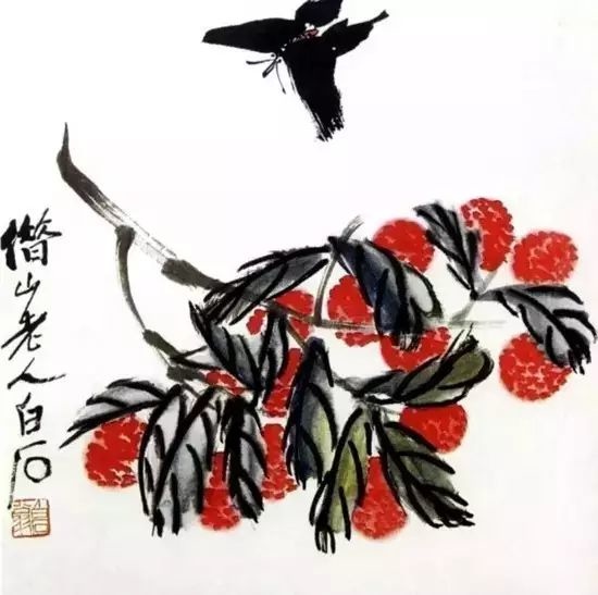 荔枝入畫(huà),取其諧音,寓以“吉利”、“大利”、“多利”等吉祥寓意。白石老人生前對(duì)荔枝情有獨(dú)鐘,其對(duì)荔枝的喜愛(ài),也多能從他的畫(huà)作中得到印證。