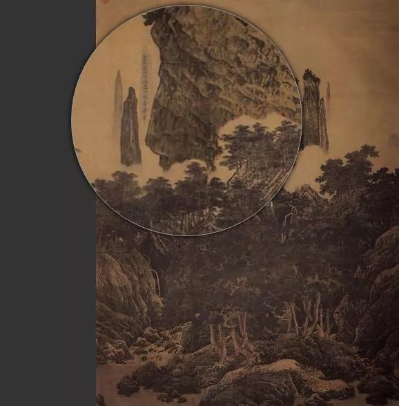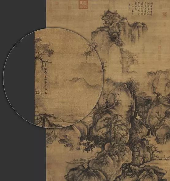 李唐,南宋畫家,字晞古。初以賣畫為生, 宋徽宗趙佶時(shí)入畫院。李唐《萬(wàn)壑松風(fēng)圖》隱款“皇宋宣和甲辰春,河陽(yáng)李唐筆”于遠(yuǎn)處山峰之中。